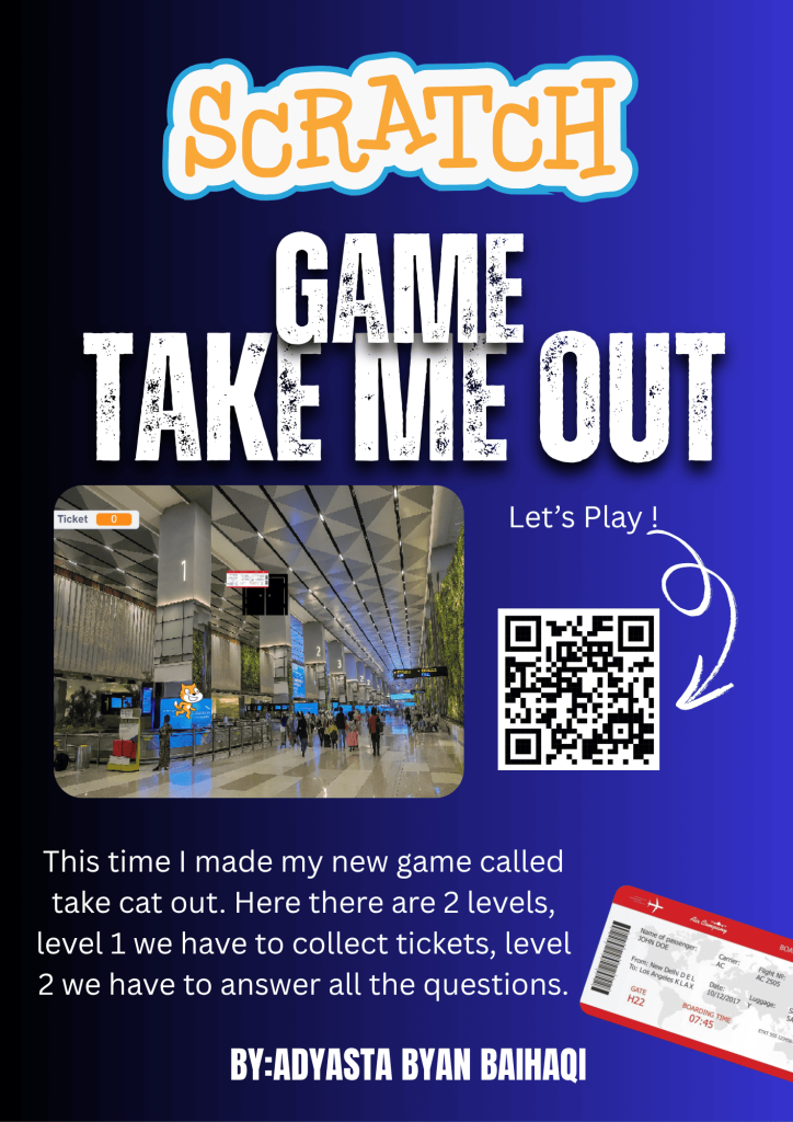 This time I made my new game called take cat out. Here there are 2 levels, level 1 we have to collect tickets, level 2 we have to answer all the questions. How to play, click the right arrow button if you want to go right and the left one too, and if you want to go up, click the up arrow button, the down one is the same, if you want to go down, click the down arrow button, that’s so fun right?, lets play!.