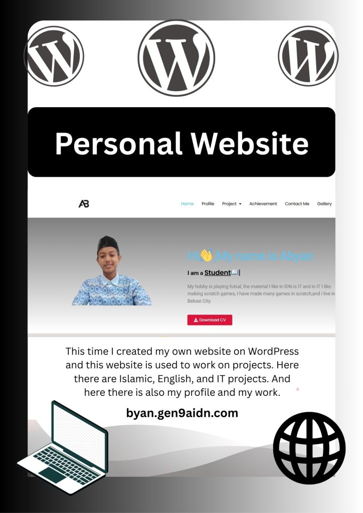 This time I made a personal website and I made this personal website on WordPress. On this website there are my projects, there are Islamic studies, English and IT.I use this website to make my projects at school and also This website  has my complete profile and my gallery and there are also works of mine that I have made and in here you can see my achievement at my school.so you can also see my contact